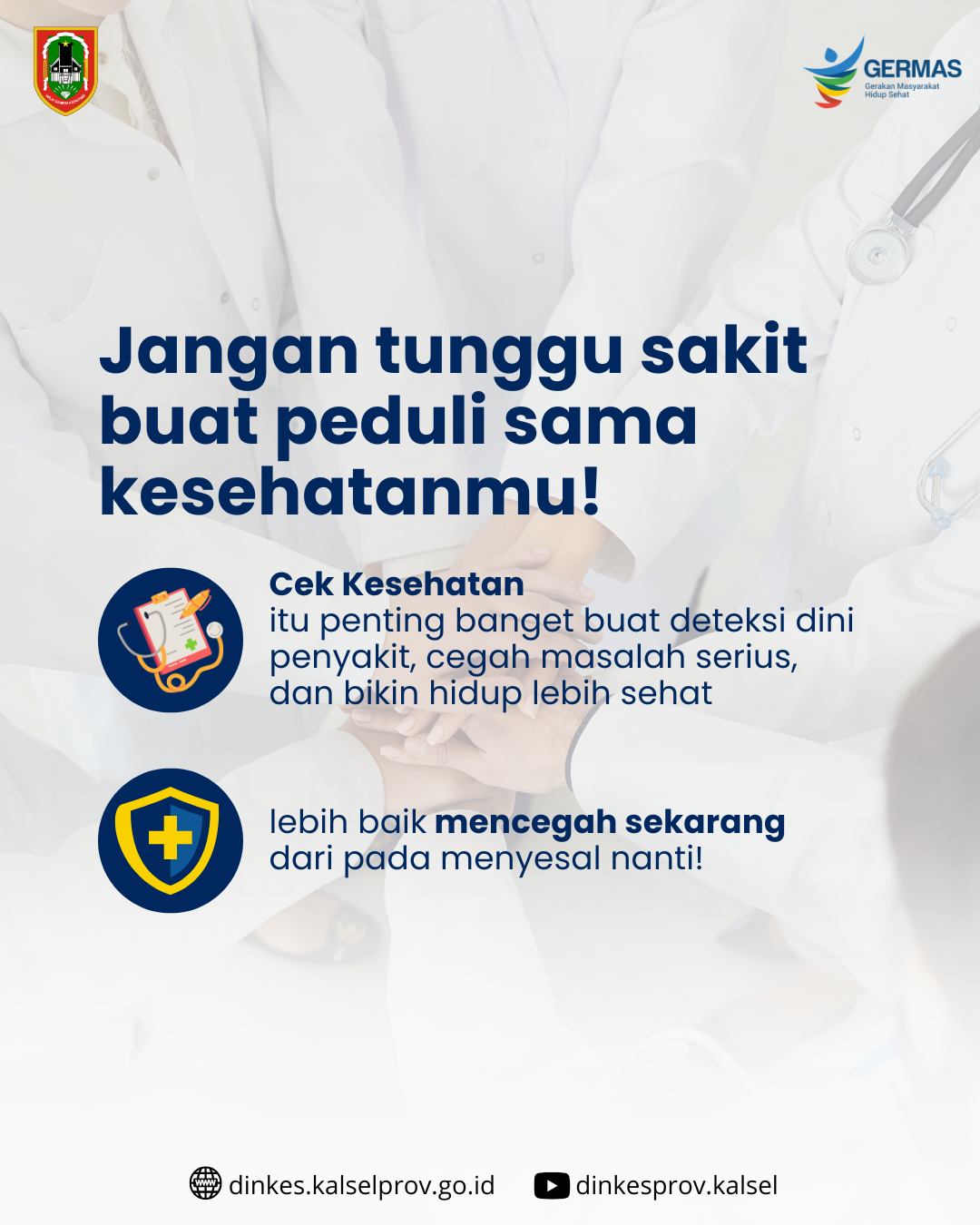 Sobat sehat, cek kesehatan itu penting banget buat deteksi dini penyakit, cegah masalah kesehatan yang serius, dan bikin hidup lebih sehat. Lebih baik mencegah sekarang dari pada menyesal nanti!